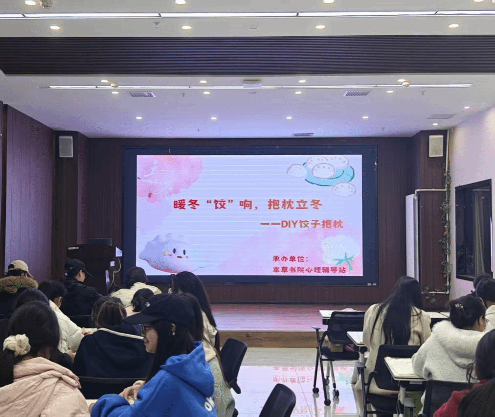 本网讯(图/文 齐玉桥)立冬将至,寒意渐浓,风肃霜凝,万物敛藏。为引导同学们在节气更替中感受温暖、舒缓压力,本草书院心理辅导站于11月8日举办“暖冬‘饺’响,抱枕立冬,DIY饺子抱枕”活动。大家穿针引线,缝制软萌“饺子”抱枕,在专注创作中放松身心,传递冬日关怀与心理温暖。