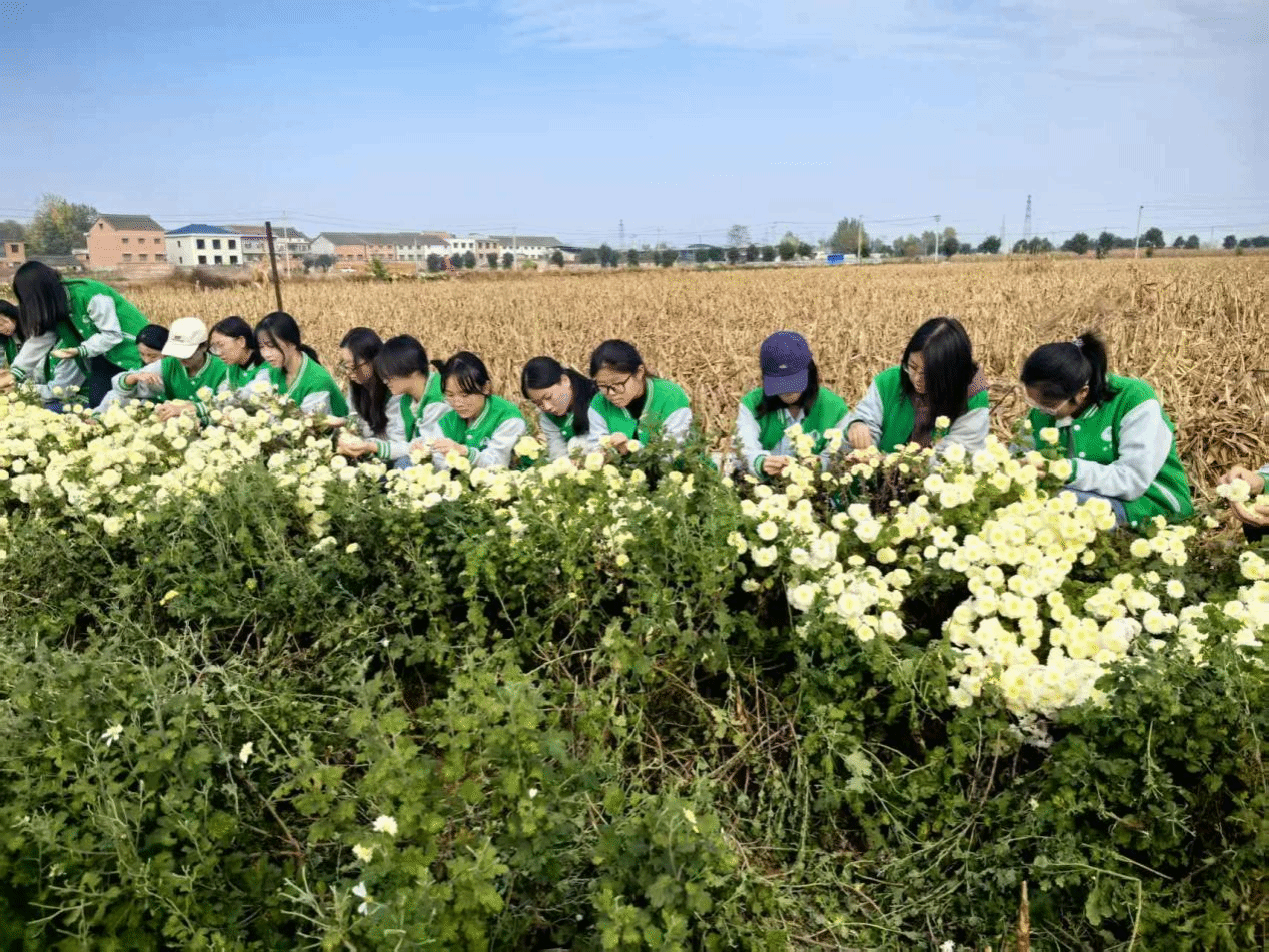 武陟县作为“四大怀药”的道地产区,有着三千余年的种植历史,其独特的地理环境和种植技艺造就了怀药卓越的品质。活动伊始,李克松系统讲解四大怀药的历史渊源、本草考证、道地特性及现代研究成果,让学生们直观感受到怀药从传统种植到现代化发展的变迁历程。纸上得来终觉浅,绝知此事要躬行。在专业实践环节,师生深入四大怀药种植基地,学习怀药的选种、育苗、种植、田间管理等关键技术要点。同学们热情高涨,纷纷拿起工具,在技术人员的指导下参与到怀地黄采挖、怀菊花采摘、品质筛选等劳动中。尽管田间泥土沾满裤脚,但大家丝毫不在意,专注地学习每一个操作细节,互相交流采收经验。同学们表示:“以前在课本上只知道怀药是河南的道地药材,今天亲手参与采收,才真正明白‘道地’二字背后凝聚着农人的智慧与辛劳,进一步树立了专业自信。”
