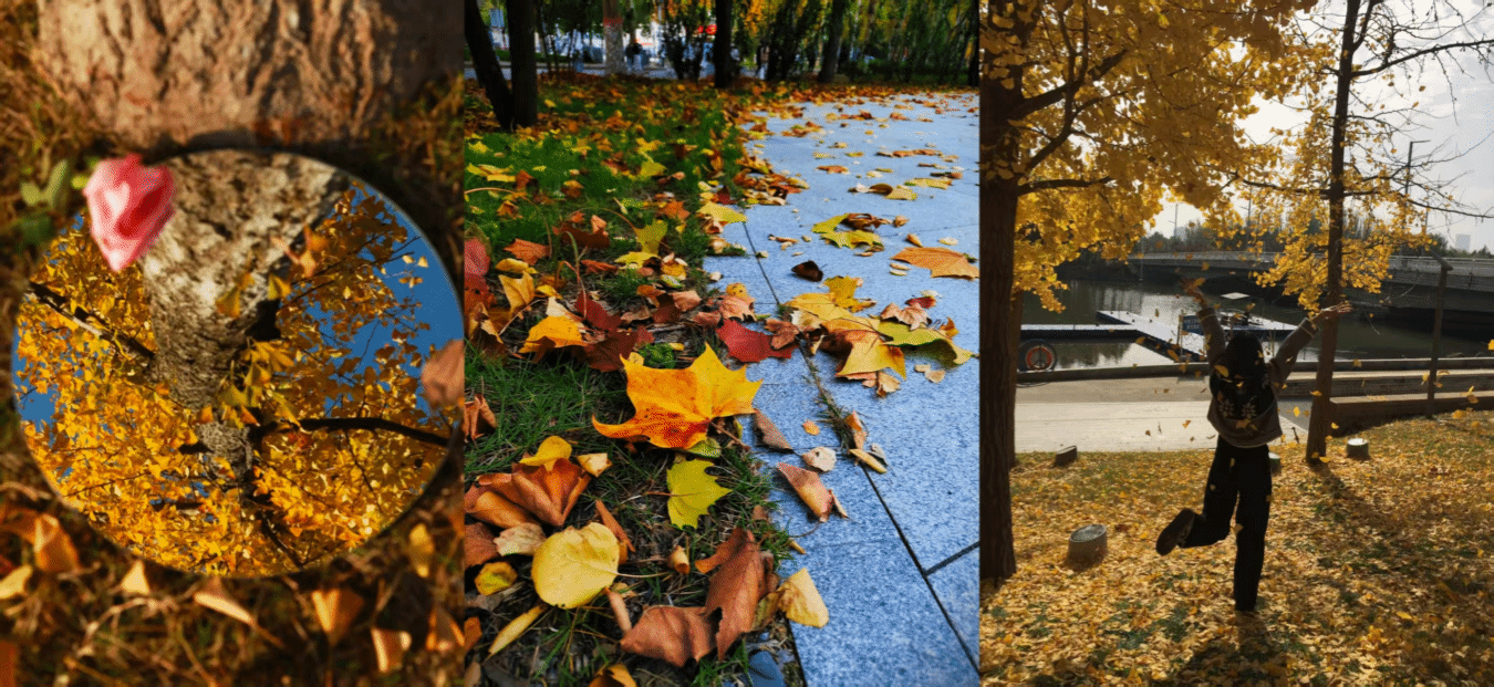 秋景是校园里流动的诗行,承载着诗意、眷恋与美好。本次活动号召学生用镜头记录诸如晨光里图书馆台阶上静卧的梧桐叶、课间操场上学生踩叶而过的身影、雨后窗玻璃上沾着水珠的枫叶等场景,用心捕捉校园里真实且鲜活的秋意。参赛作品内容丰富、形式多样,有金黄银杏铺就的校园小径,也有赭红梧桐点缀的教学楼角落。2025级本科班牛鑫的作品十分亮眼,巧妙捕捉到落叶与校园建筑相互映衬的画面,通过清晰的叶脉纹路与校园场景的呼应,传递出对校园秋景的喜爱以及对时光沉淀的感悟,展现出校园秋日的自然之美与人文气息。2025级本科班牛妍的作品同样令人赞叹,以独特视角定格学生与落叶互动的瞬间,既展现出青春的蓬勃活力,也让校园秋景更具温度,使短暂的秋日景致成为可长久留存的校园记忆。