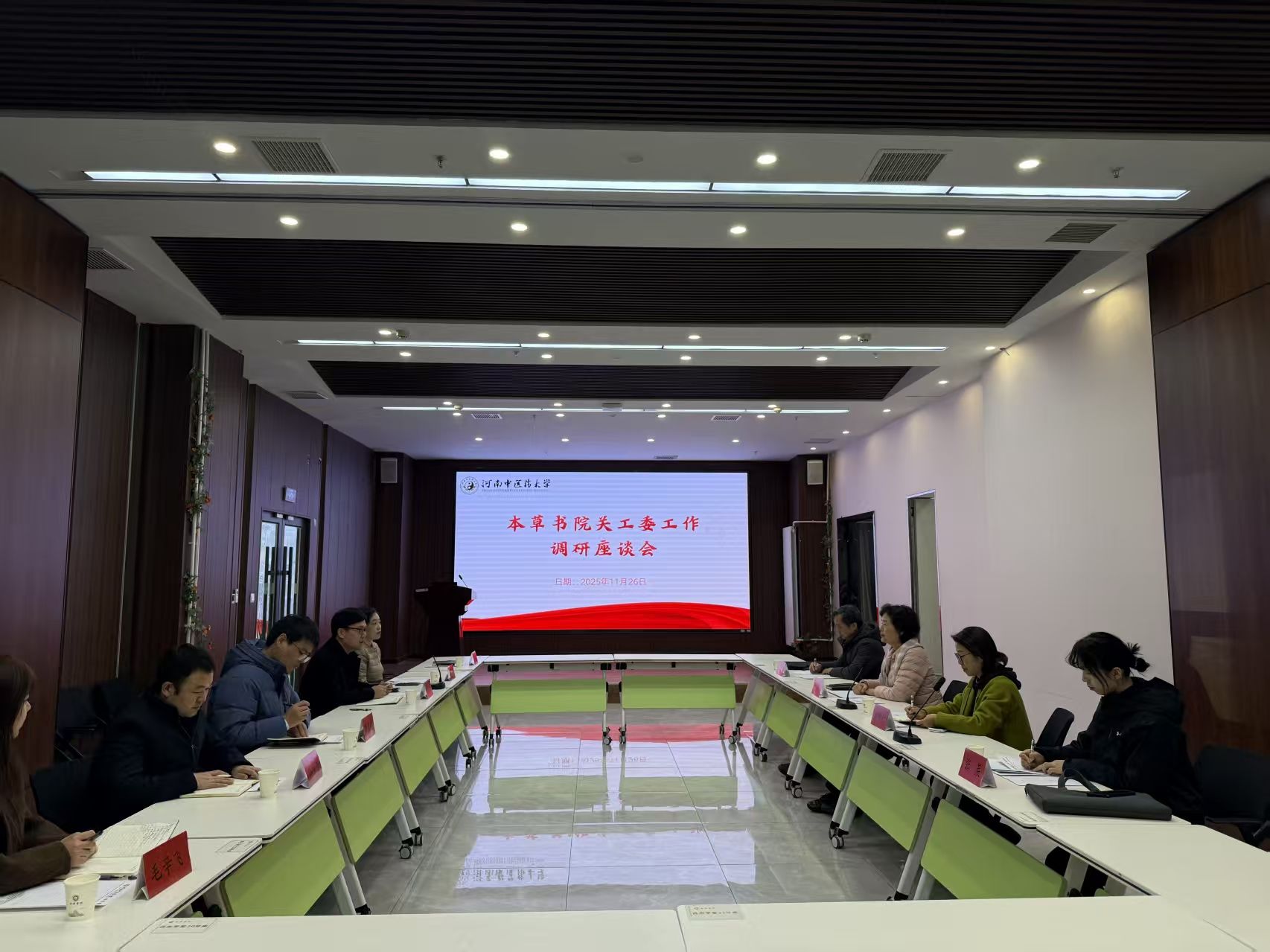 本网讯(文/图 李艳阁)为进一步加强关工委组织建设,推动关心下一代工作在书院落地生根、走深走实,2025年11月26日,校关工委常务副主任张丽霞、常务副秘书长蒋时红、副秘书长艾国军一行莅临本草书院专题调研书院关工委工作开展情况。本草书院党委书记、执行院长刘雅琳,副院长高巍、张文举以及书院关工委成员、育人导师等出席座谈会,双方围绕关工委工作创新发展、协同育人等议题深入交流探讨。