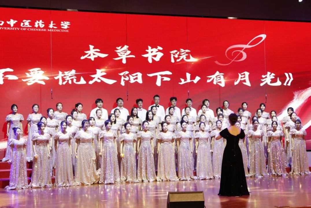 这首歌唱给所有同龄的青年,也唱给那段波澜壮阔的爱国岁月。一二·九运动中先辈们的勇毅精神,在新时代青年的歌声里化作直面前路波折的从容——“太阳下山有月光”,一句歌词道尽治愈与希望,也道出了青年们传承爱国精神、不惧前路坎坷的信念。哪怕未来有风雨波折,青春自有月光铺就的坦途,这份独属于中医药学子的温柔与坚韧,在舞台上久久回荡,也让一二·九运动的爱国火种,在歌声中得以赓续与传递。
