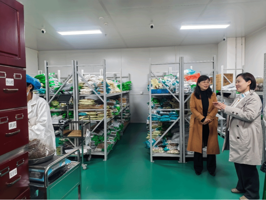 活动中,高巍一行首先前往企业物流中心及煎药中心参观,实地了解现代化仓储车间、煎药车间及中药饮片仓库运行情况。企业依托规范化、智能化管理体系,高效开展中药储运与代煎服务,并与我校第一附属医院在中药代煎与配送方面保持深度合作,业务协同紧密、运行成效良好。通过实地走访,进一步加深了对企业生产运营及岗位需求的直观认识。